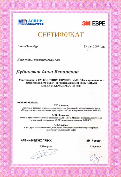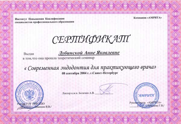 В 1987 году закончила Первый медицинский институт. Неоднократно проходила курсы усовершенствования при МАПО, в учебном центре «АМФОДЕНТ», принимала участие в международных стоматологических симпозиумах. Принимала участие в создании и вела цикл телевизионных передач по детской стоматологии в программах «Большой Фестиваль» и «Дороже денег». Имеет именной сертификат по эстетической реставрации зубов, работала в элитных клиниках города.
